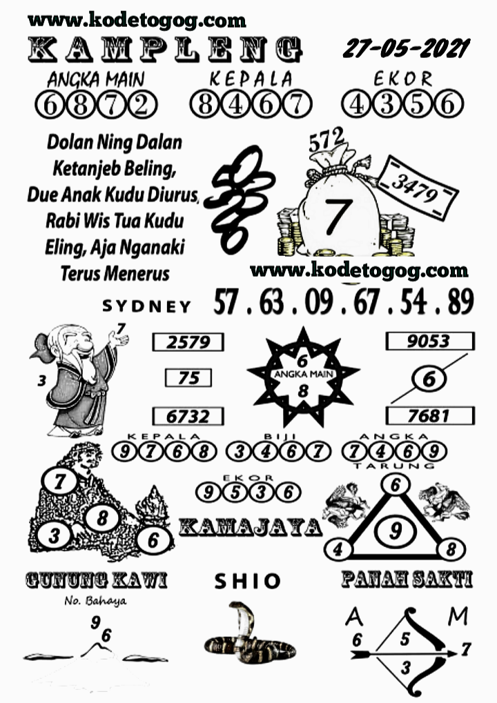 Kode ramalan nyi plered sydney kamis 27 mei 2021 SYAIR NYI PLERET